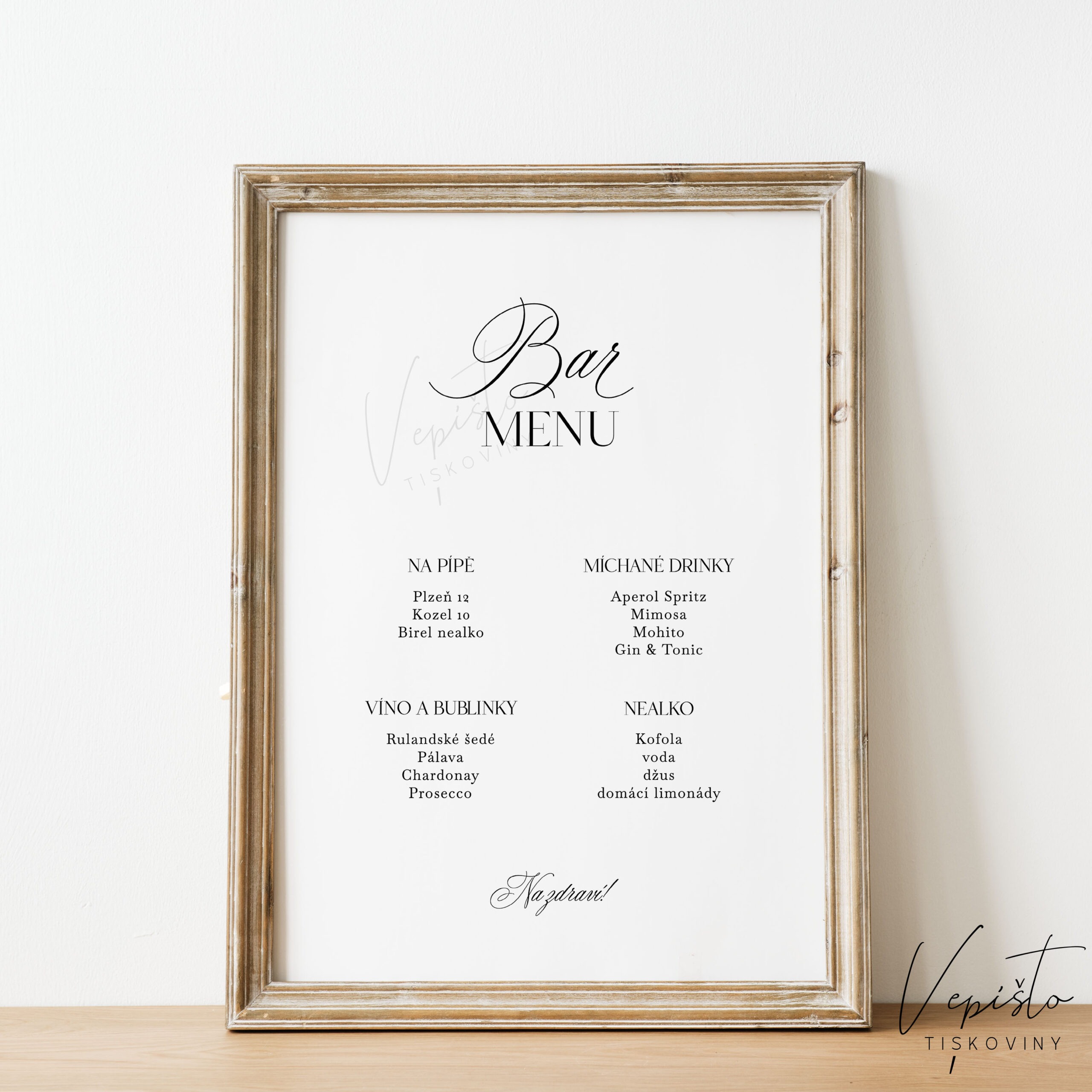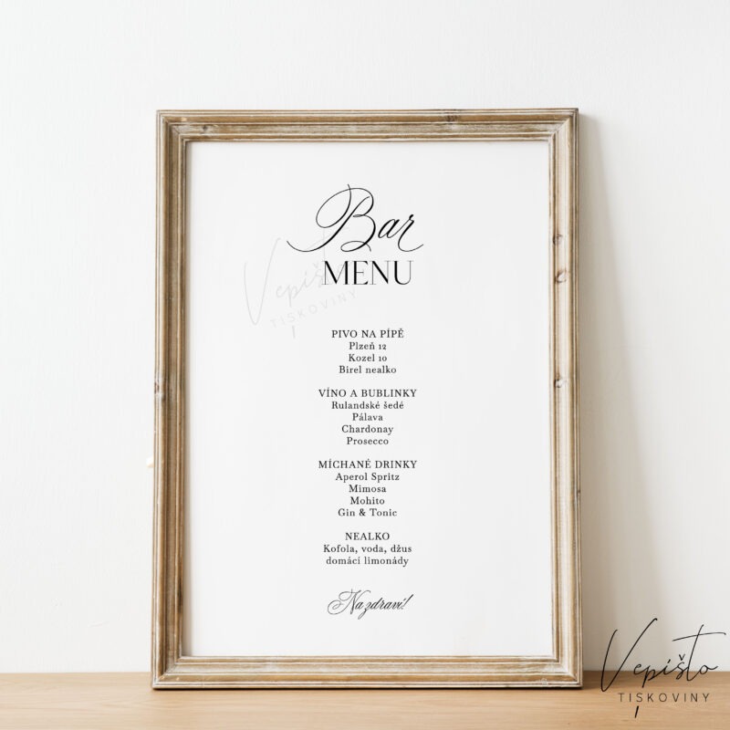 Velký nápojový lístek ve dvou velikostech, který se hodí k umístění poblíž baru. Nadpis si ovšem můžete přepsat, takže z nápojového lístku může být třeba rautové menu, nebo cokoli jiného.