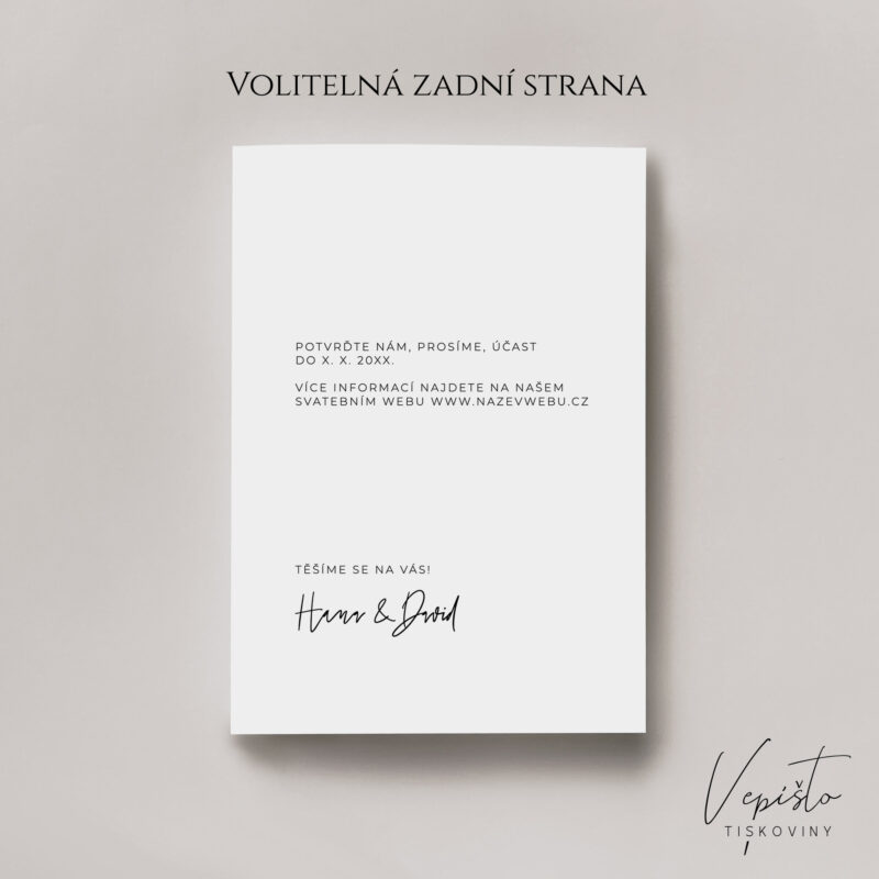 Jednoduše moderní, svatební oznámení s tiskacími jmény, zarovnané vlevo