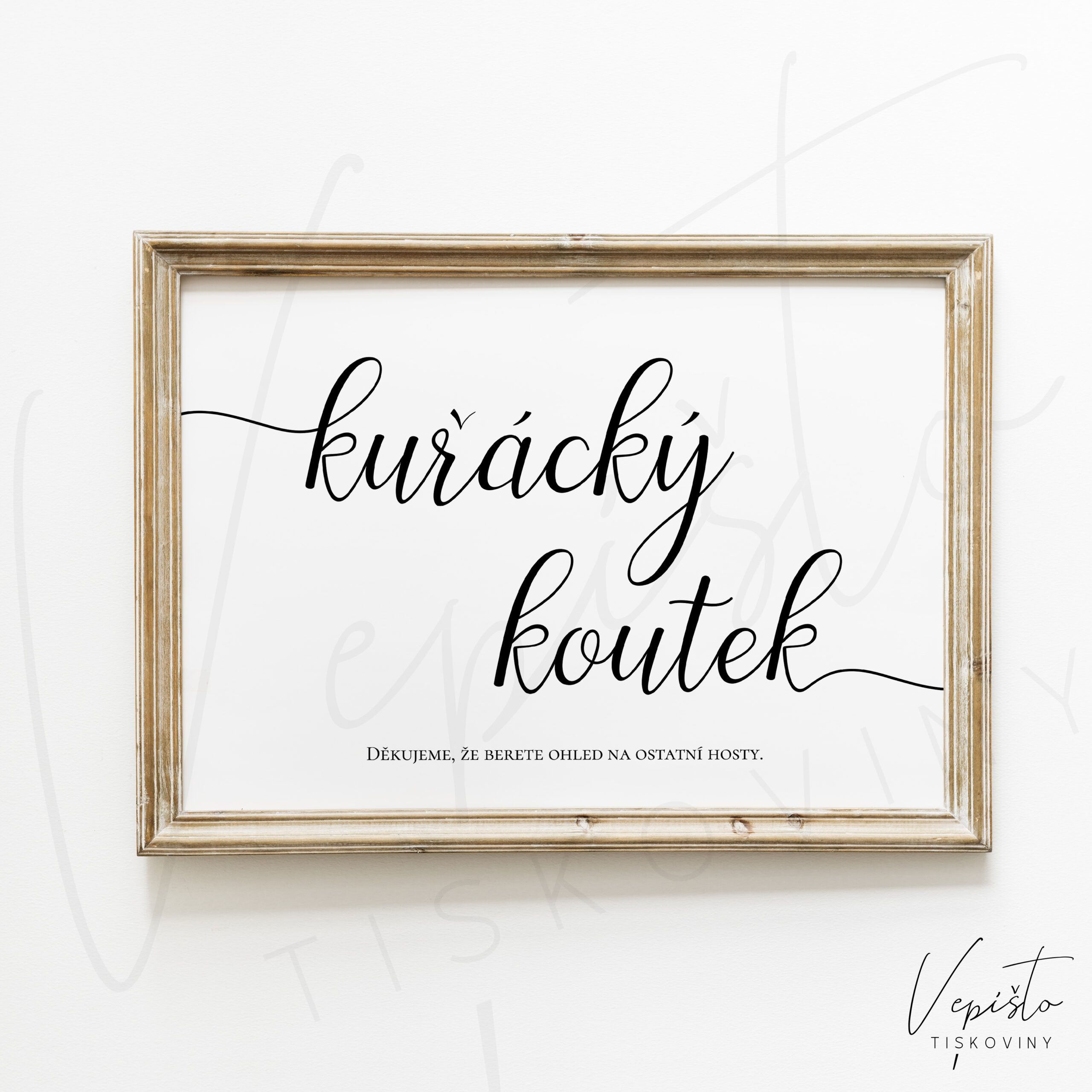 Černobílá cedule ve dvou velikostech. Můžete ji ozvláštnit tím, že ji vytisknete na jiný, než bílý papír, třeba oblíbený hnědý kraftový.