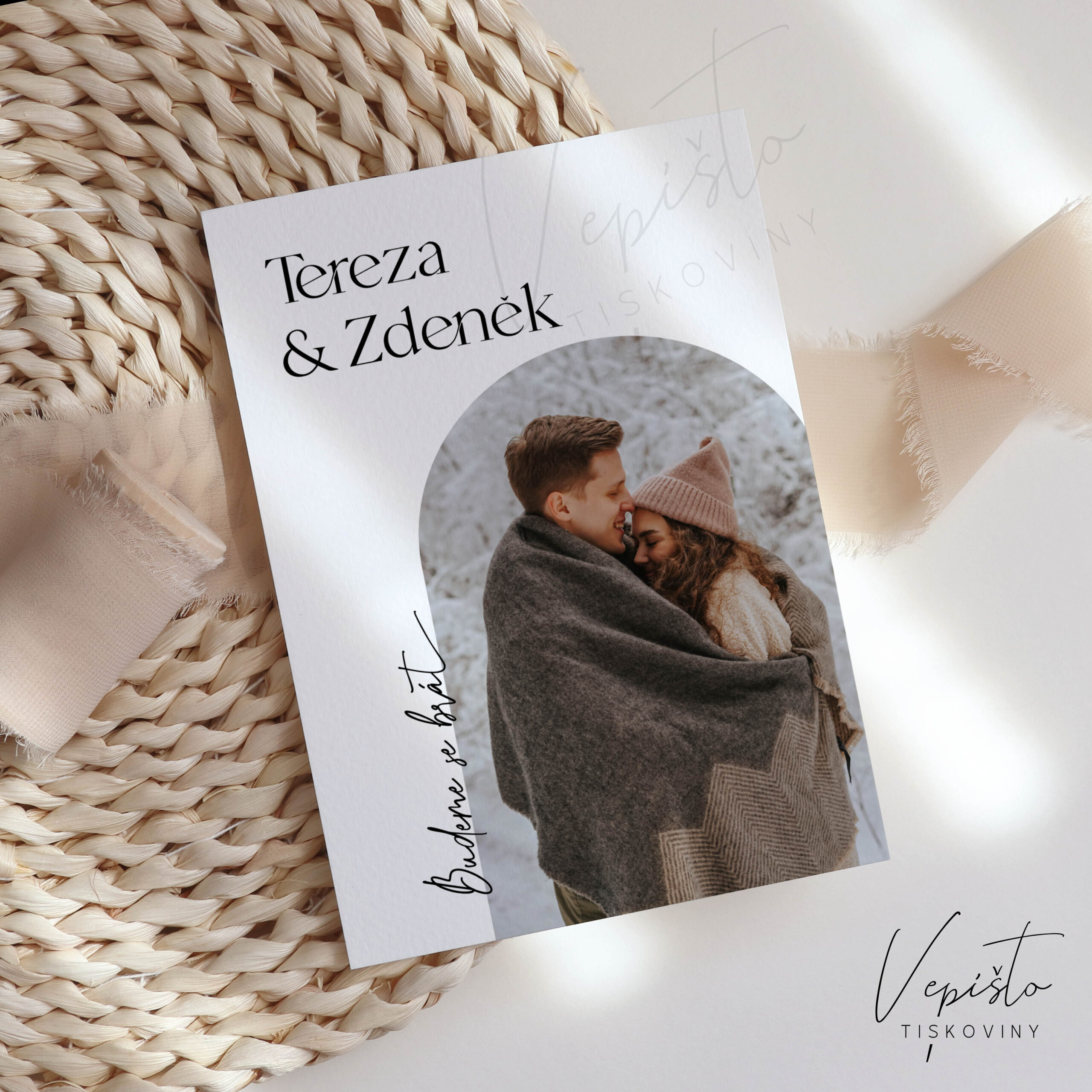 Oblouky, svatební oznámení s fotografií
