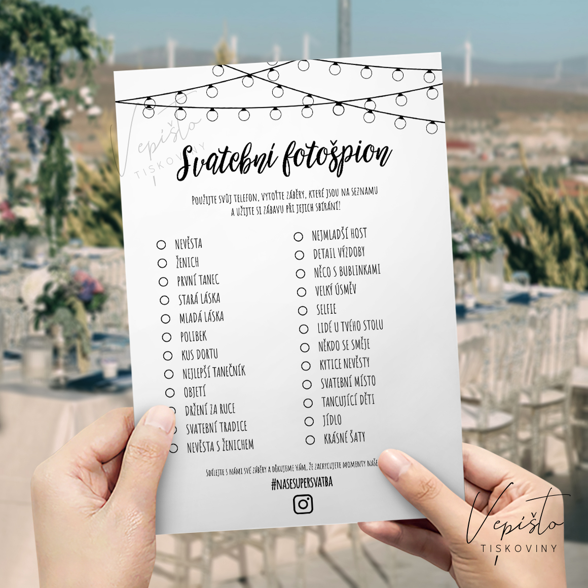 Hra „Svatební fotošpion“ zabaví vaše hosty kdykoli budete potřebovat, třeba během vašeho focení nebo jen tak, během dne. Jako bonus možná získáte zajímavé fotografie.