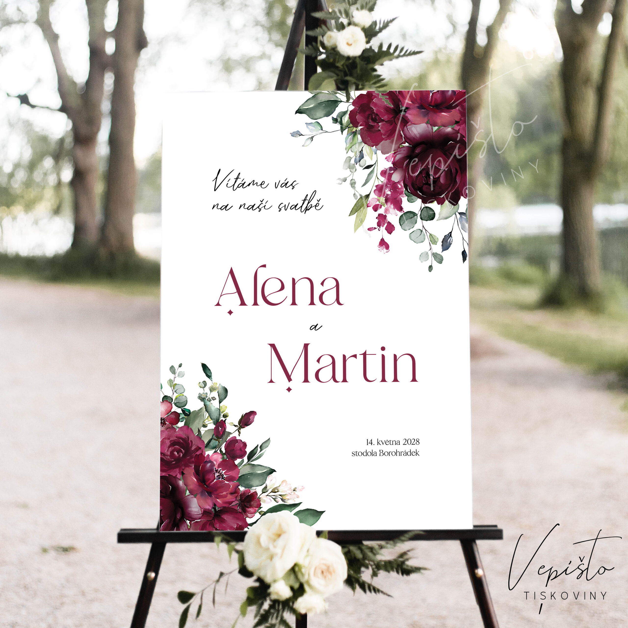 Připravte vašim hostům uvítání a ujistěte je, že jsou tady správně – na vaší svatbě! Uvítací cedule je ve třech velikostech.