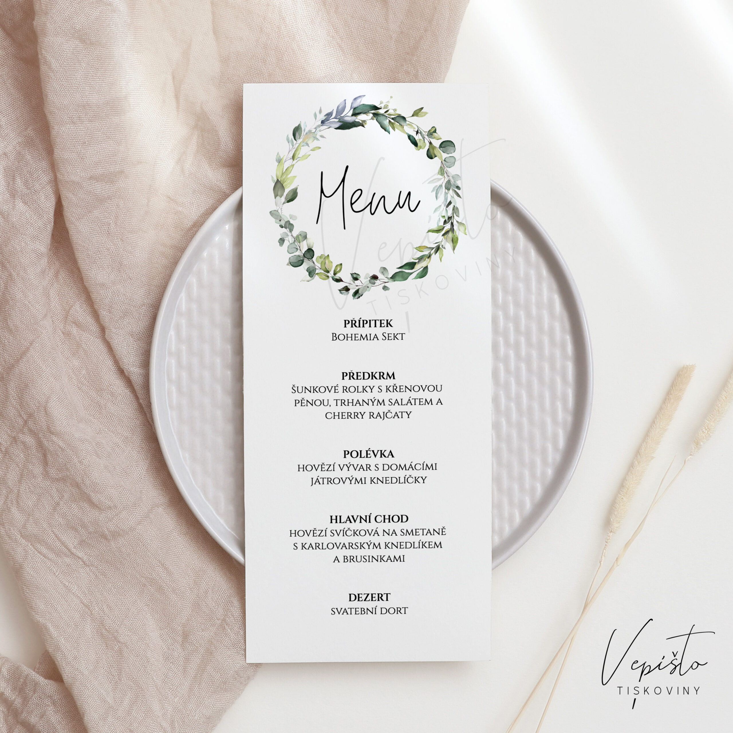 Zelené listy, menu s věnečkem