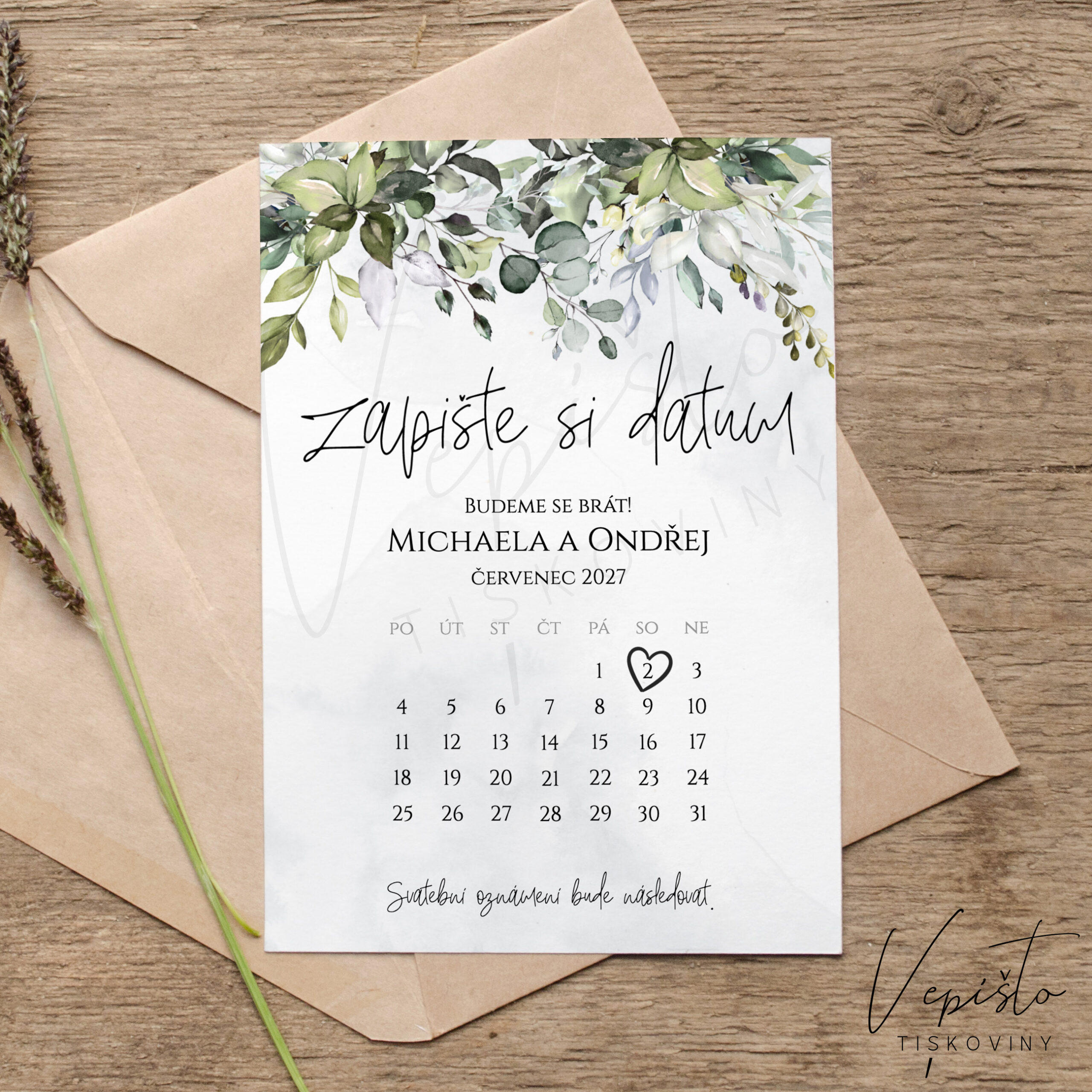 Zelené listy, zapište si datum (save the date) s kalendářem