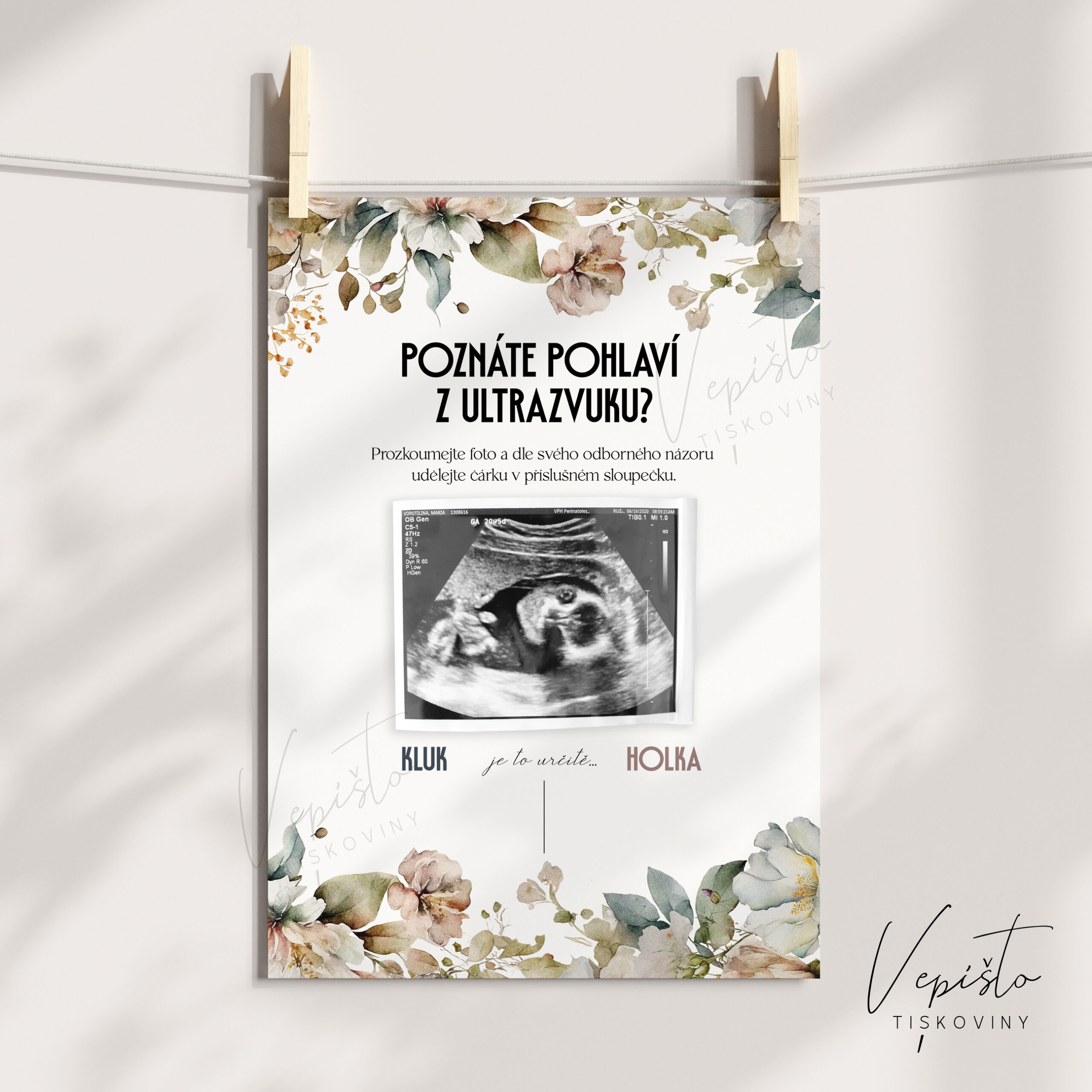 Zemité tóny, plakát na gender reveal Poznáte pohlaví z ultrazvuku