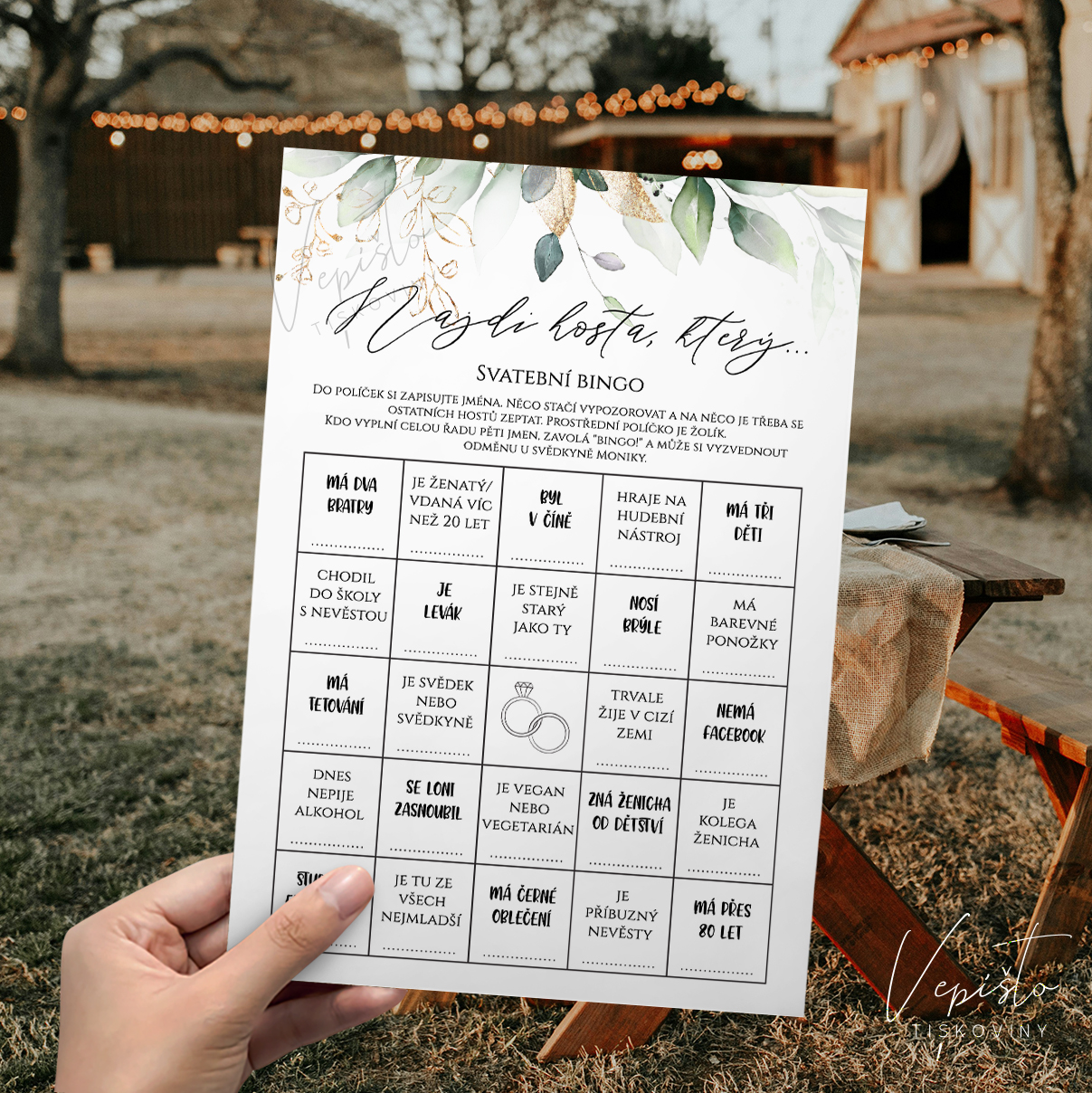 Zlaté a zelené listy, svatební hra Najdi hosta (svatební bingo)